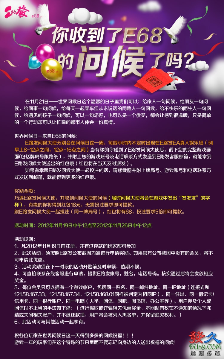 E68的问候大使即将登场,请大家做好准备哦发久论坛发久论坛 专业预测 博彩策略 http://bbs.du89.com/